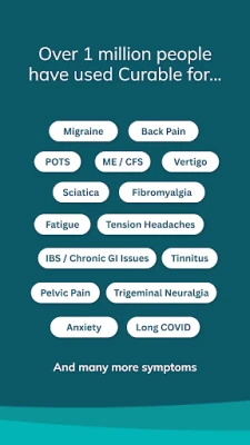 Over 1 million people have used Curable to find lasting relief from chronic pain and symptoms, including back pain, migraine, fibromyalgia, sciatica, and more.